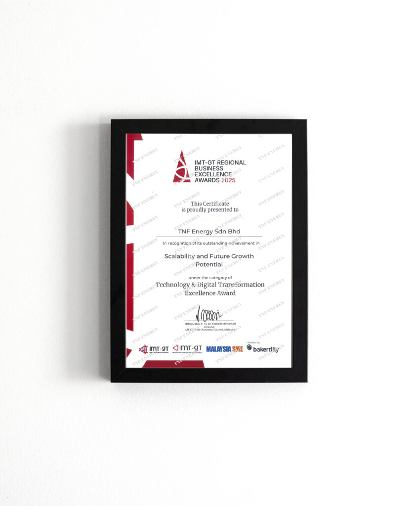 IMT-GT REGIONAL BUSINESS EXCELLENCE AWARD 2025 – Scalability and Future Growth Potential under the category of Technology & Digital Transformation Excellence Award